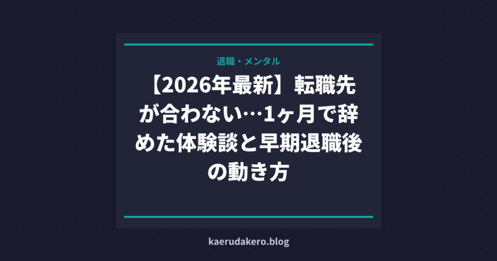 【2026年最新】転職先が合わない…1ヶ月で辞めた体験談と早期退職後の動き方