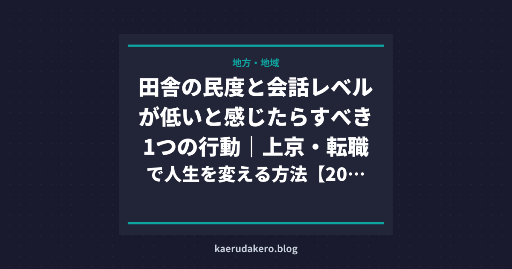 田舎の民度と会話レベルが低いと感じたらすべき1つの行動|上京・転職で人生を変える方法【2026年最新】
