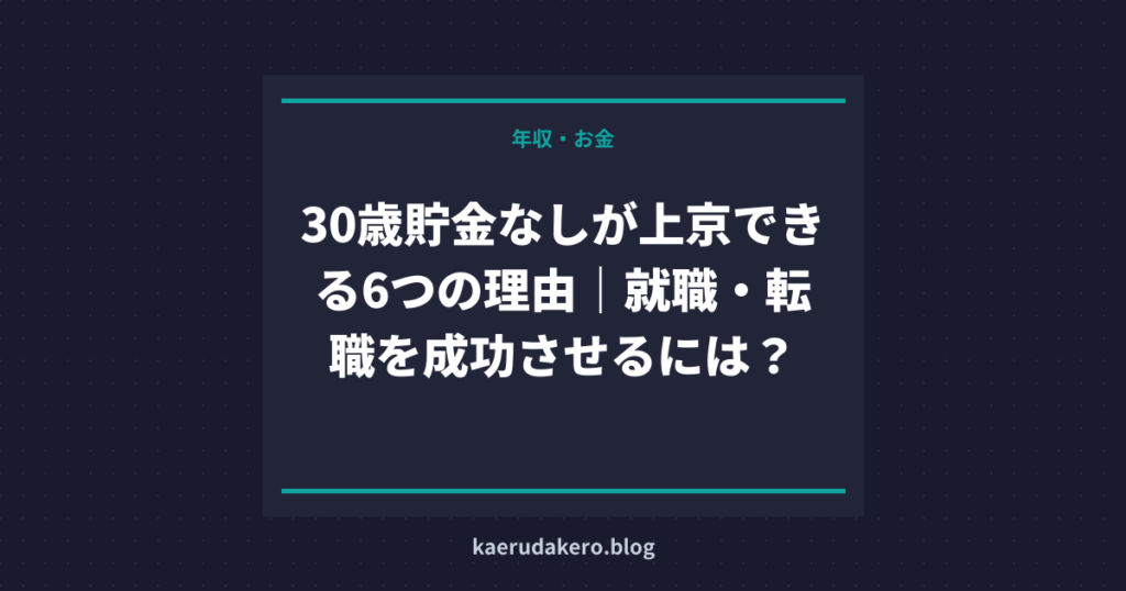 30歳貯金なしが上京できる6つの理由|就職・転職を成功させるには?について体験談と実践的な手順を詳しく解説。転職・就職・キャリア再構築を考える人向けのガイド。