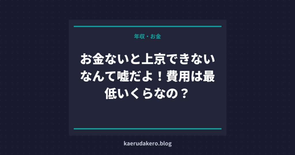 お金ないと上京できないなんて嘘だよ!費用は最低いくらなの?