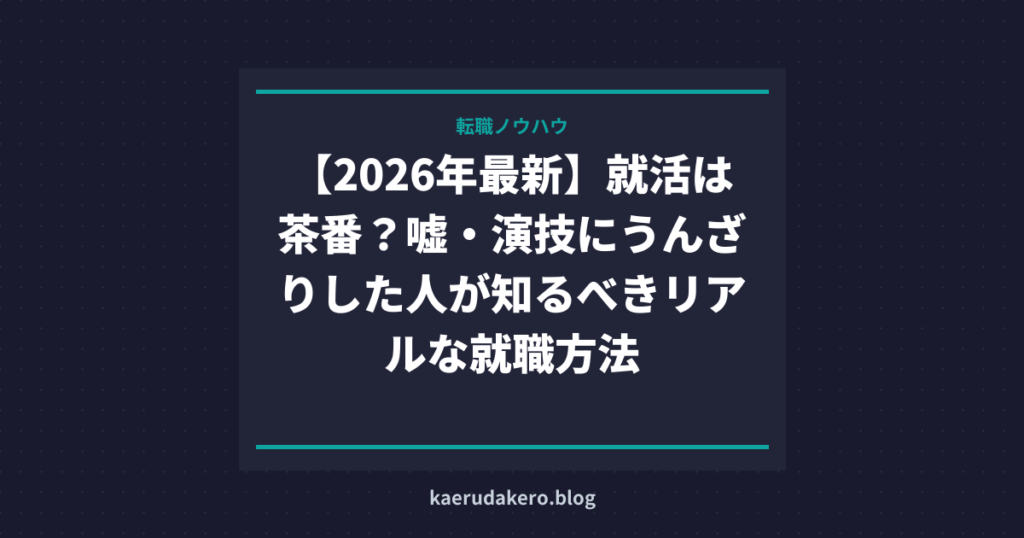 【2026年最新】就活は茶番?嘘・演技にうんざりした人が知るべきリアルな就職方法