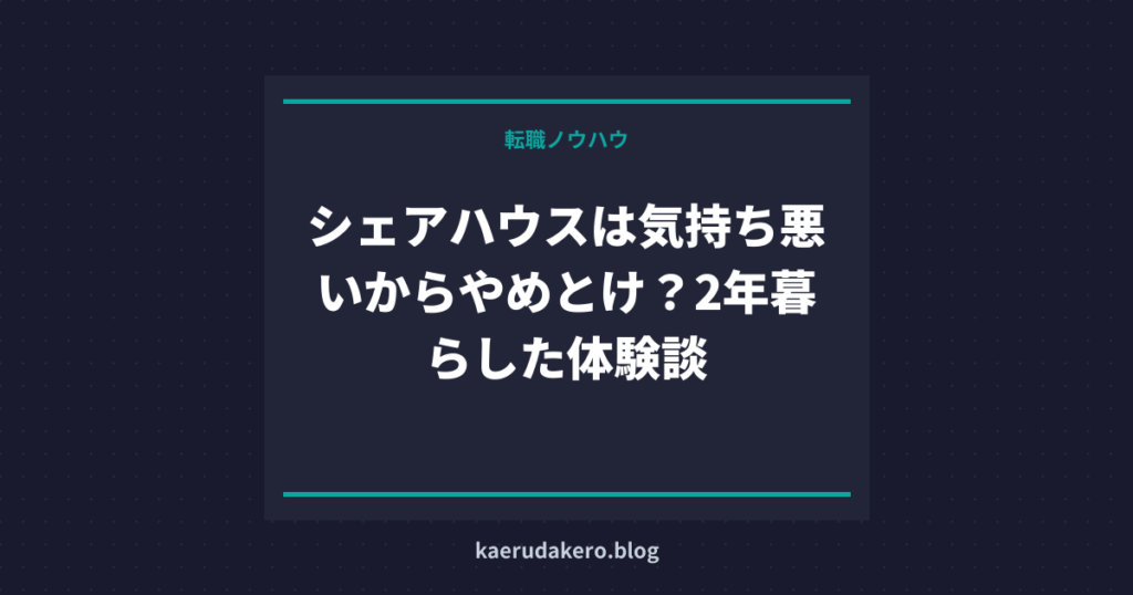 シェアハウスは気持ち悪いからやめとけ?2年暮らした体験談