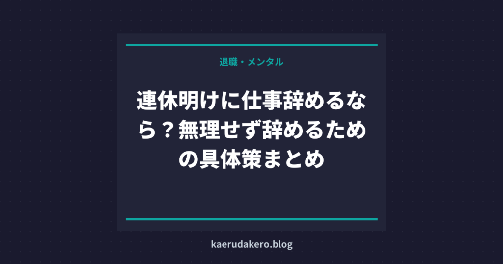 連休明けに仕事辞めるなら?無理せず辞めるための具体策まとめ