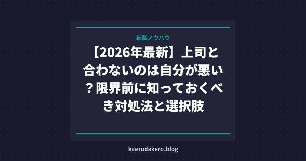 【2026年最新】上司と合わないのは自分が悪い?限界前に知っておくべき対処法と選択肢
