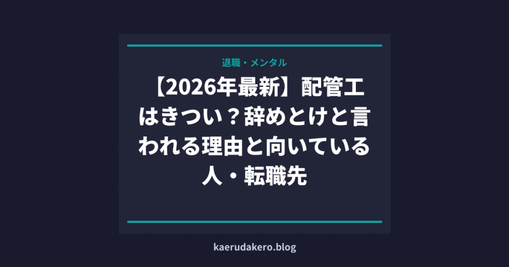 【2026年最新】配管工はきつい?辞めとけと言われる理由と向いている人・転職先
