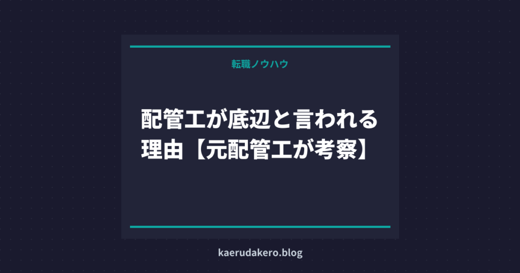 配管工は底辺の仕事という言葉を聞いたことがある人は多いだろう。この記事では、配管工の実態・年収・将来性をフラットに解説する。きつい部分があるのは本当だ。ただし年収や将来性という観点では、正しく動けばそれなりに評価される職種でもある。順番に見ていこう。