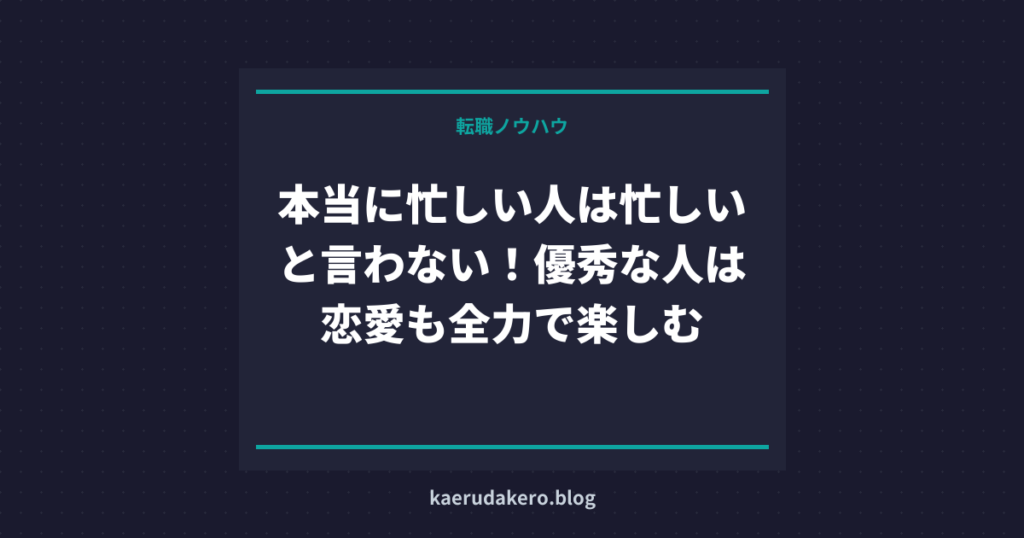 本当に忙しい人は忙しいと言わない!優秀な人は恋愛も全力で楽しむ