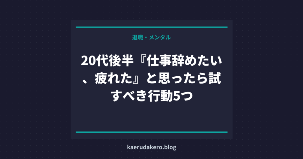 20代後半『仕事辞めたい、疲れた』と思ったら試すべき行動5つ