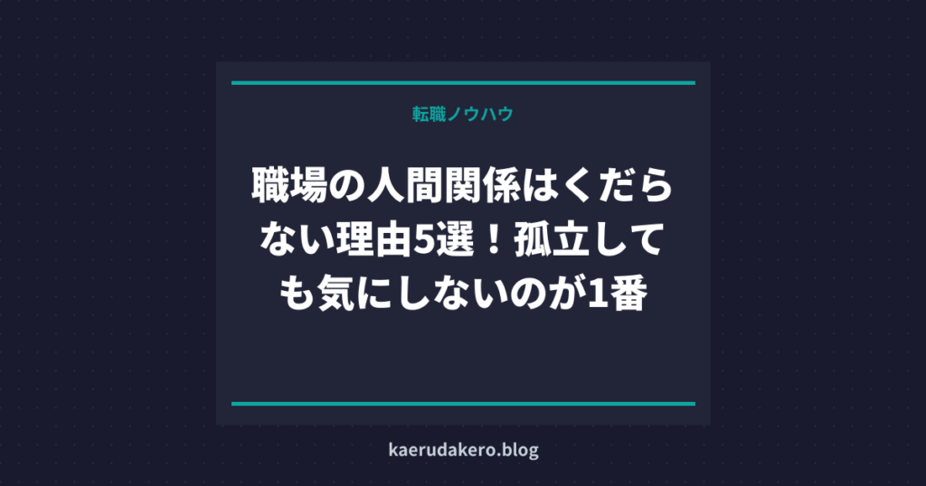 職場の人間関係はくだらない理由5選!孤立しても気にしないのが1番について体験談と実践的な手順を詳しく解説。転職・就職・キャリア再構築を考える人向けのガイド。