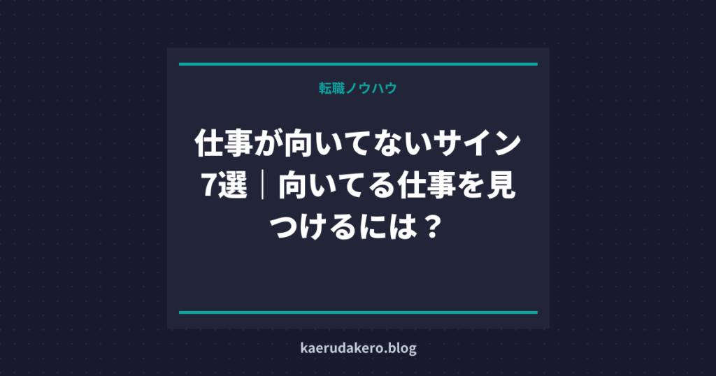 この仕事、自分に向いてないんじゃないか…って思ったことない?毎朝起きるたびに重い気持ちになる。仕事でミスを連発する。周りが簡単にやってることが自分だけできない。そういう状態が続くと、もしかして自分ってダメなのかもって自己嫌悪に陥りやすい。でもちょっと待ってほしい。