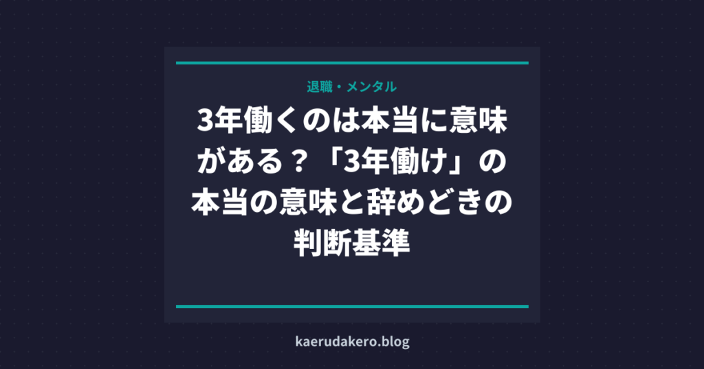 3年働くのは本当に意味がある?「3年働け」の本当の意味と辞めどきの判断基準