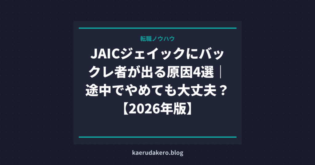 JAICジェイックにバックレ者が出る原因4選|途中でやめても大丈夫?【2026年版】