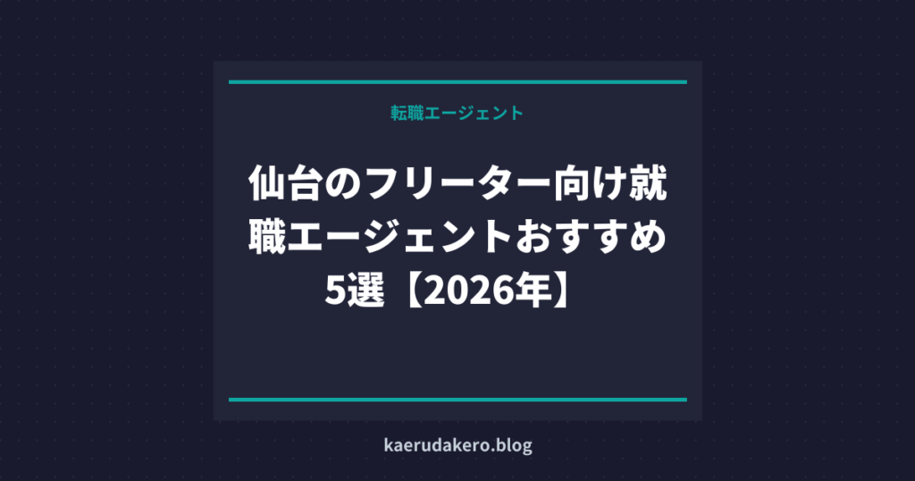 仙台でフリーターをやっていて、そろそろ正社員になりたいと思っているなら、転職エージェントを使うのが最速ルートだ。ただ、エージェントは数が多すぎてどれを選べばいいか分からない。この記事では、仙台在住のフリーターが実際に使えるエージェントを5つ厳選して比較する。