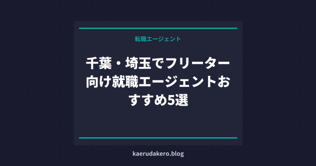 千葉・埼玉在住だけど、東京の企業に転職すべきか、地元で就職すべきか迷ってる首都圏のベッドタウンに住むフリーターが抱えるこの悩みは、実はシンプルに解決できる。この記事では転職エージェントを10社以上使った元ニートの僕が、千葉・埼玉のフリーターにおすすめのエージェントを解説する。
