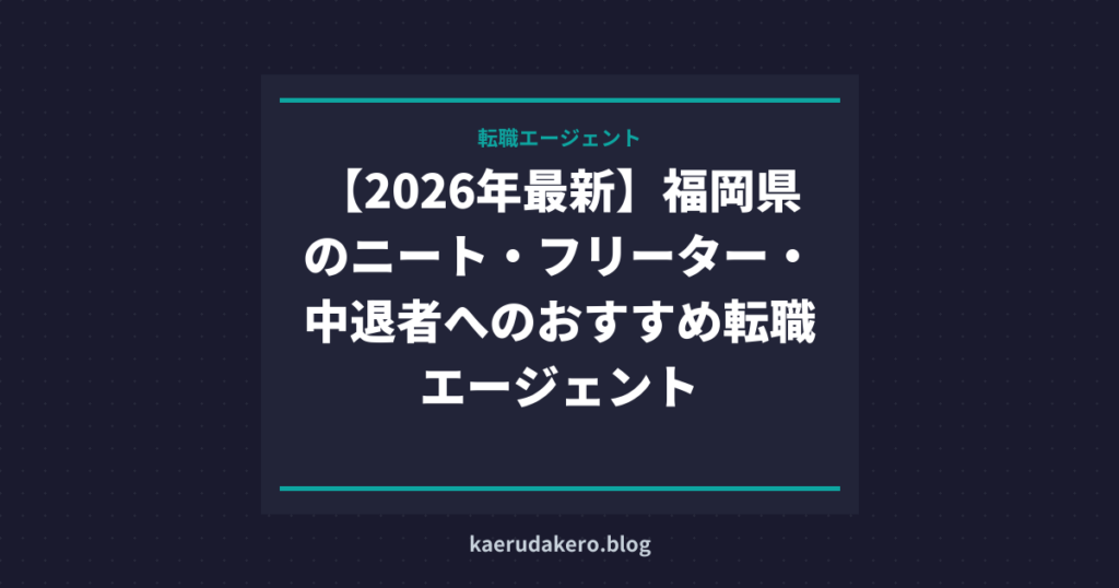 【2026年最新】福岡県のニート・フリーター・中退者へのおすすめ転職エージェント