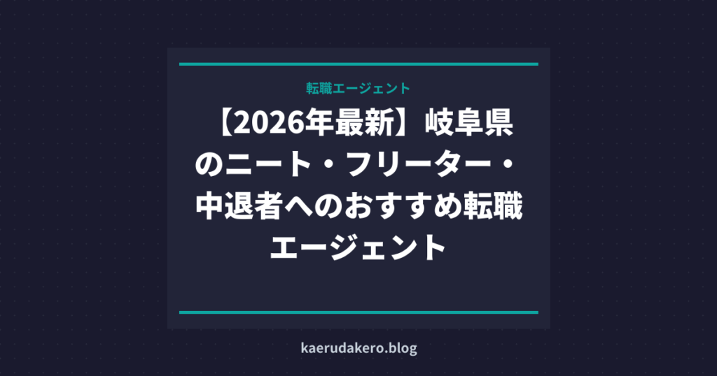 【2026年最新】岐阜県のニート・フリーター・中退者へのおすすめ転職エージェント