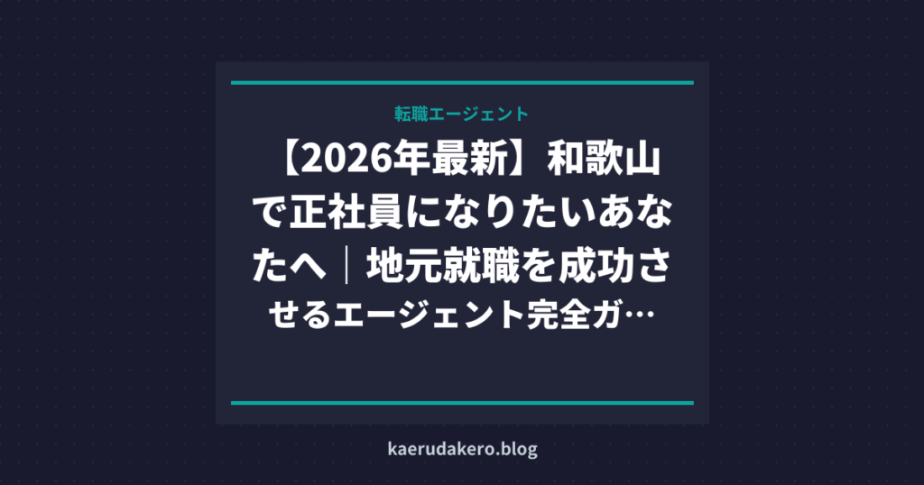 【2026年最新】和歌山で正社員になりたいあなたへ|地元就職を成功させるエージェント完全ガイド