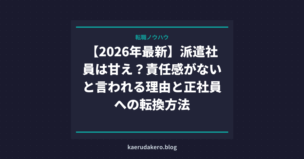 【2026年最新】派遣社員は甘え?責任感がないと言われる理由と正社員への転換方法