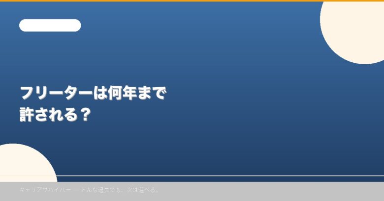 「フリーターは何年まで許されるのか」。この疑問に対する答えは、「年数」よりも「年齢」で決まるというのが現実です。