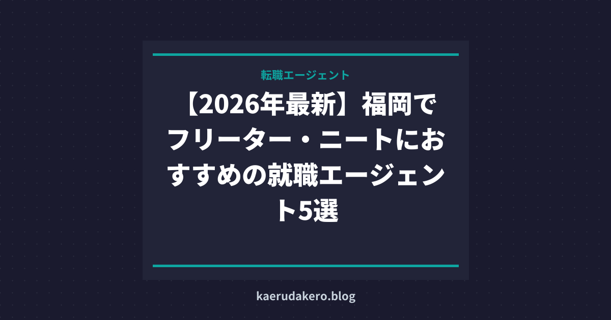 福岡在住のニート・フリーター向けに、実際に使うべき転職エージェント5選を比較。福岡の求人データ・平均年収と、東京より住みやすい理由も解説します。