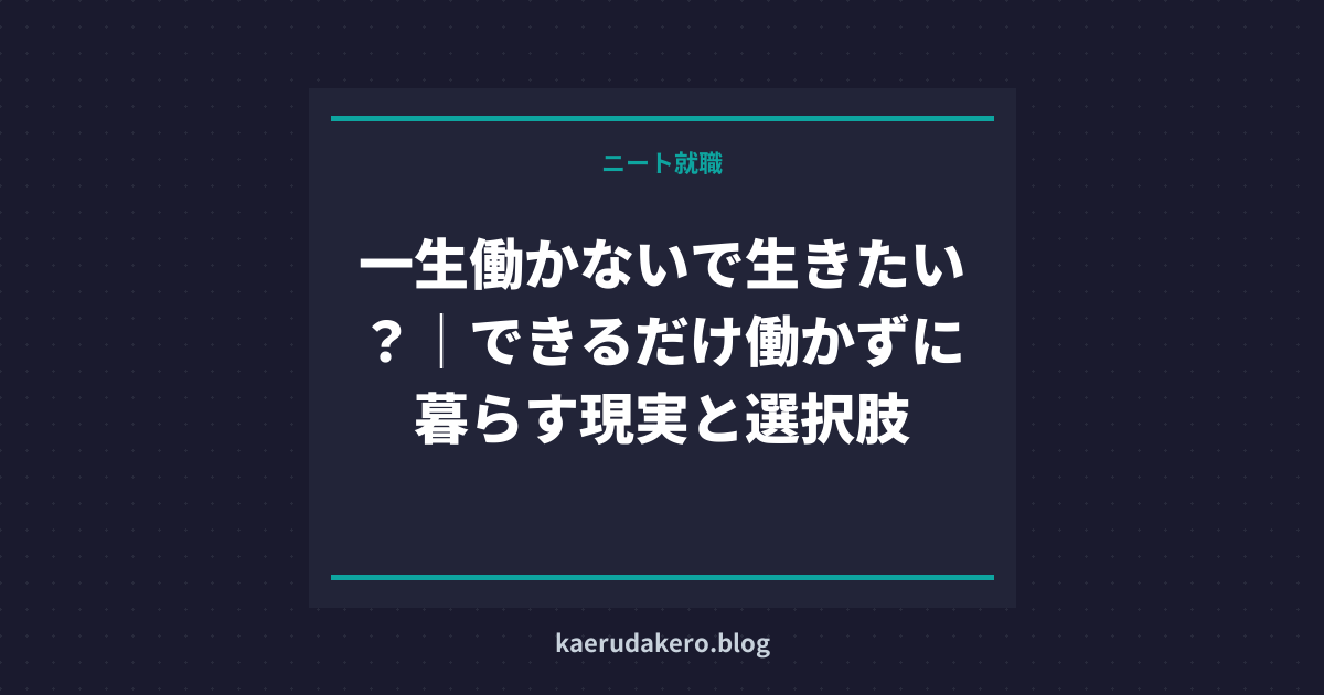 今回はこのような背景のボクが、一生ニートでいたいと感じる人に向けて、なるべく働かない生活をする方法を伝授していきます。