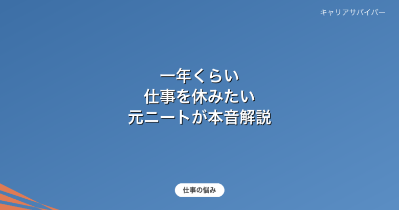 「一年くらい仕事を休みたい」と思ったら読む記事|元ニートが本音で解説【2026年最新】