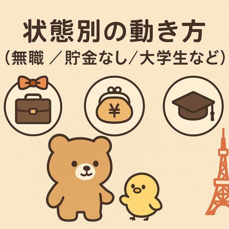 状態別の動き方(無職/貯金なし/大学生など)