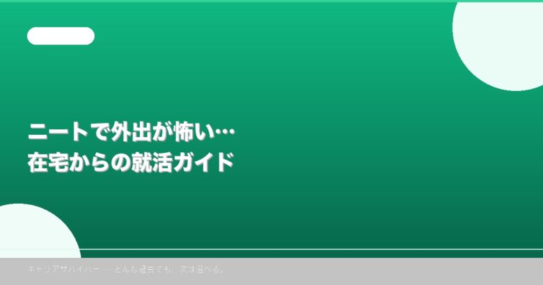 外出が怖いのは、ニート生活が長い人にとってごく自然な反応です。大事なのは、「怖い」を否定せず、「怖くない方法」から始めること。現在はオンライン面談対応のエージェントが増えており、自宅のスマホやPCから就活をスタートできます。外に出る必要はありません。まず家の中でできることから始めましょう。