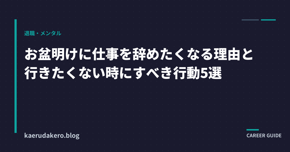 この記事では、お盆明けに辞めたくなる心理的・環境的な理由を整理しながら、「行きたくない気持ち」を前向きな行動に変えるための具体的なステップ5選を紹介します。