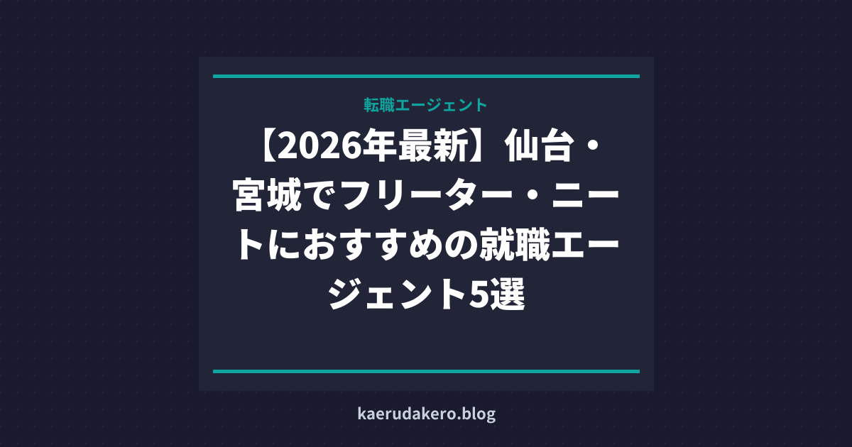 仙台在住のフリーター・ニートが使うべきエージェントを厳選した。仙台拠点あり・オンライン対応の両方を組み合わせることで選択肢が最大化できる。