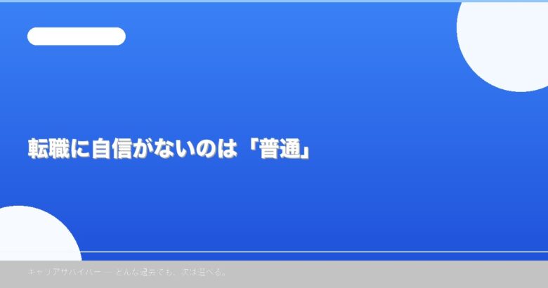 「自分のスキルで転職できるのか」「他の会社で通用するのか」「面接で何を話せばいいのか」。転職に自信が持てないのは、ごく自然な感情です。