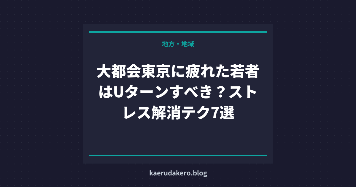 都会疲れには「地方移住」と「転職(職場環境を変える)」の2択がある。どちらが正解かは、疲れの根本原因による。仕事のストレスが主因なら転職が先。生活環境(騒音・家賃・孤独)が主因なら移住も有効。