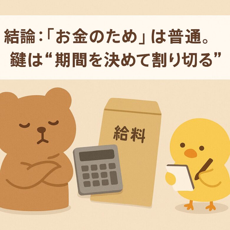 結論はシンプル。お金のために働くのは普通です。大事なのは、だらだら続けず“期間を決めて割り切る”こと。